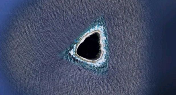 Se trata de una pequeña isla, captada y fotografiada por los satélites, mostrada en la aplicación de Google Earth con una gran mancha negra la cual indica, o un error en la fotografía, o verdaderamente un agujero negro en el lugar.