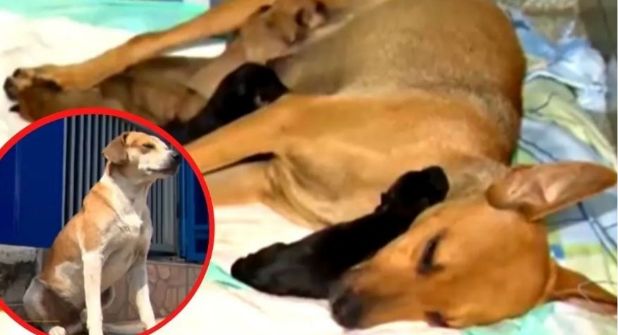 Las cámaras lograron captar a una perrita esperando a las afueras de la clínica veterinaria, por lo que uno de los trabajadores salió del lugar para darse cuenta de que la perrita estaba a unos pocos minutos de dar a luz, por lo que decidió llevarla al interior de la clínica para ayudarla.