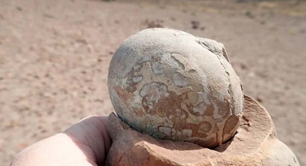 Encuentran más de 100 huevos de dinosaurio fosilizados en la provincia sur de Santa Cruz, Argentina.