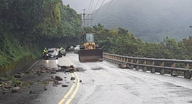 En la autopista Suhua un suto sufrió severos daños, debido a la caída rocas.