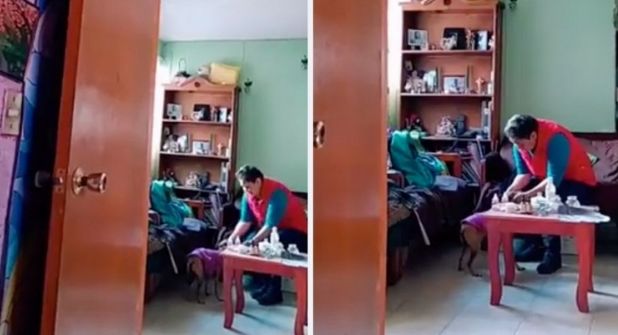 El video lo captó una joven, quien es hija de la mujer que habla con su mascota.