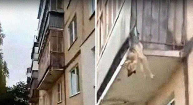 RUSIA.- Una perrita que colgaba de un balcón en una comunidad de Rusia fue rescatada por varias personas de buen corazón. El tierno animal se supone que huía de su dueño quien la maltrataba, además que la dejaba por varios días, pero no sólo a ella, si no a un gato también. El video se ha vuelto viral.
