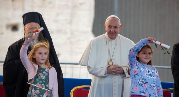 Además en su discurso en el que participaron varios líderes religiosos como el Patriarca Ecuménico de Constantinopla, Bartolomé I, el rabino Pinchas Goldschmidt, presidente de la Conferencia de Rabinos Europeos, y la Canciller alemana, Angela Merkel quien estuvo con el Santo Padre por la mañana en el Vaticano.