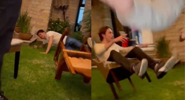 Y es que, cuando apenas estaba terminando de burlarse de su amigo, uno de los jóvenes repitió la misma historia. Bastaron un par de segundos para que el mueble colapsara y dejara al borracho posado sobre el pasto. Las imágenes del video se volvieron virales; acumulan más de 6.8 millones de reproducciones.