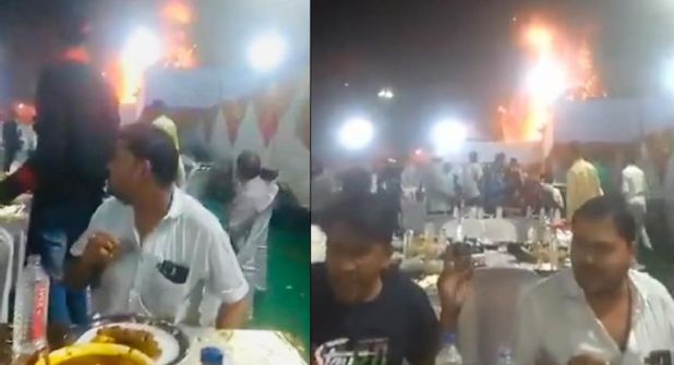 La comida estaba tan deliciosa, o quizás a este grupo de personas no le temen a nada, porque no les importó que un incendio se presentará a unos cuantos metros de ellos, ya que no dejaron de comer mientras disfrutaban una boda, su reacción quedó grabada en video y ¡se hizo viral!