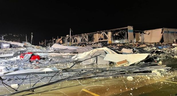 El tornado dejó graves daños en la ciudad de Mayfield, de unos 10 mil habitantes, donde el fenómeno meteorológico derrumbó una fábrica en la que trabajaban en ese momento más de un centenar de personas, provocando una cifra “masiva” de víctimas.