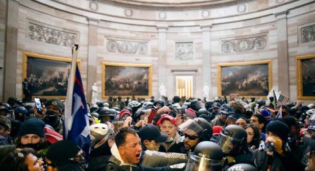 Los partidarios de Donald Trump enfrentándose violentamente con la policía en el Capitolio, tras la certificación de Joe Biden como presidente electo.