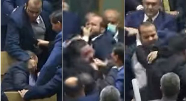 En el parlamento de Jordania, una reunión paso de la normalidad a una batalla campal entre un grupo de diputados que a punta de insultos, agresiones verbales, golpes y empujones.