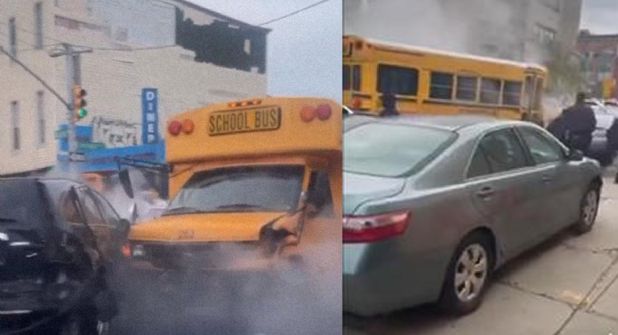 En Nueva York un sujeto robó un autobús escolar y provocó múltiples choques tras una persecución policiaca.