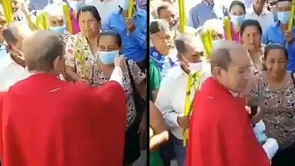 “No perdamos nuestra religión, nuestra cultura. Mire, yo miro toda esta babosada” dijo el sacerdote mientras le arrancaba el cubreboca a una mujer.