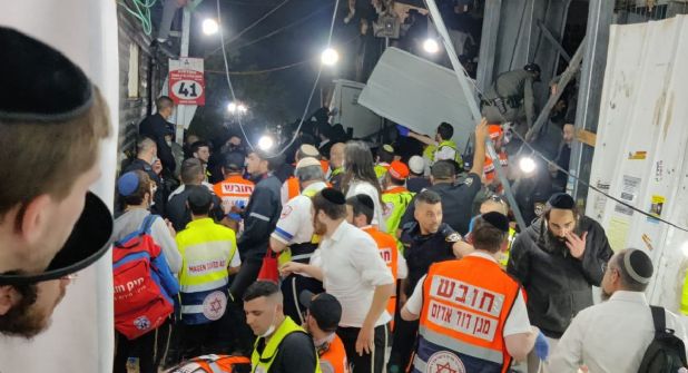 Otros medios de Israel reportaban que algunas de las gradas se habían derrumbado causando por ende el gran número de heridos, pero, el servicio de rescate comunicó que las heridas encontradas en quienes eran atendidos fueron causadas durante una estampida.