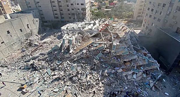 El derribo del edificio ocurrió una hora después de que el ejército de Israel ordenara la evacuación del inmueble, que también era sede de las oficinas de la cadena Al-Jazeera y de apartamentos particulares.