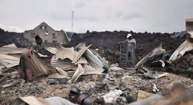 La lava del volcán sembró destrucción al este de la República Democrática del Congo, en un distrito del norte de Goma.