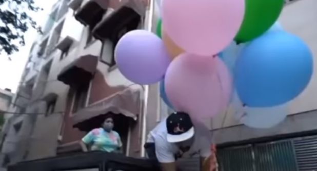 Arrestan a Youtuber que amarró globos de hidrógeno a su perrita el miércoles 26 de mayo en Delhi, India.