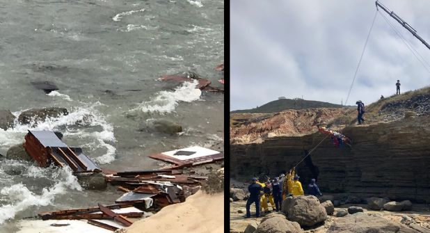 El portavoz del Departamento de Bomberos, Jose Ysea, informó que, al llegar a la escena, en la costa cerca del Monumento Nacional Cabrillo, yacían muchos escombros.