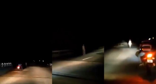 Circula un terrorífico video en redes sociales con un polémico contenido, donde se ve un extraño ser deambulando por una carretera y fue inmediatamente grabado por los testigos