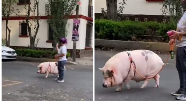 Así fue como llamó la atención una chica en calles de la CDMX, donde se le pudo ver acompañada de un "puerquito" del tamaño de una bicicleta mediana, tal cual se tratara de un perro.