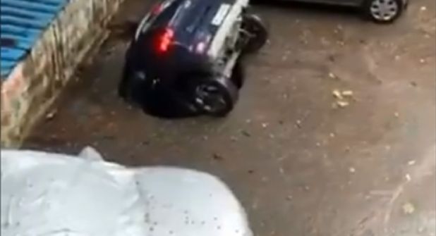 Captan momento en socavón se traga lentamente un automóvil, fue en Mumbai, India.