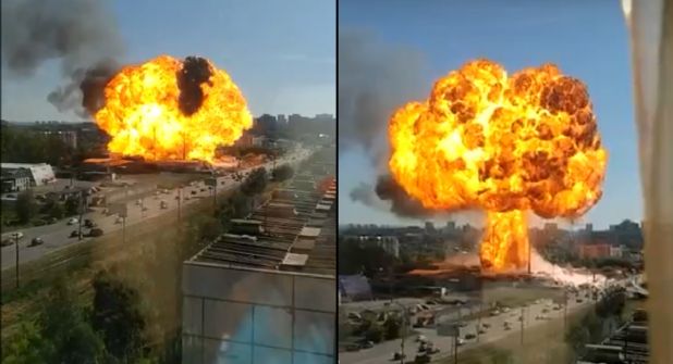 Ante la explosión una increíble columna en forma de hongo, compuesta de fuego y llamas alcanzó casi los 800 metros cuadrados, y fue captada en varios videos que de inmediato circularon en redes sociales, dichos videos fueron filmados por la gente que iba pasando por el lugar o por los residentes cercanos a la zona del desastre.