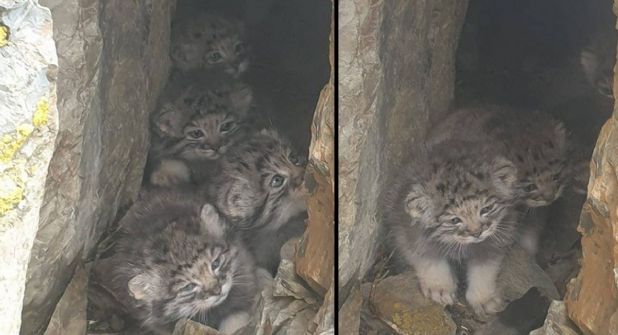 Las imágenes fueron difundidas por el Fondo Mundial para la Naturaleza en Rusia, en las mismas se pueden ver a las crías de manul, de aproximadamente un mes de edad, esperando a el regreso de su madre que presuntamente, se encuentra cazando.