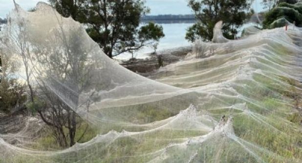 Según la BBC, este fenómeno natural se debe a un método de supervivencia de las arañas, conocido como "vuelo arácnido" en el que, de manera casi logística, se organizan para hilar una gran red de telarañas para poder sobrevivir en terrenos acuosos o pantanosos.