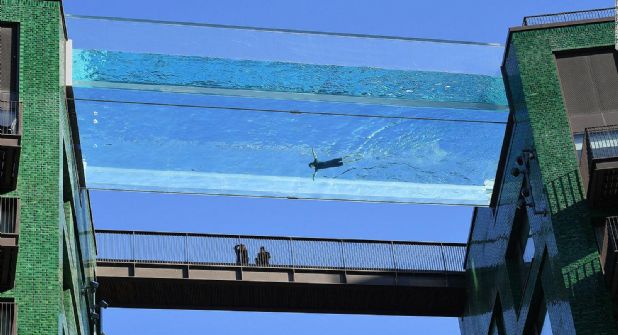 Londres tiene una nueva atracción turística, pues ahora se ha inaugurado una piscina de lo más peculiar, instalada entre dos edificios y seguramente no recomendada para quienes sufran de fobia a las alturas.