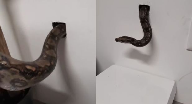 Los fumigadores explican que la serpiente esta entrenada para volver a salir y que solo espanta a los ratones, no se los come.