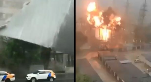 En otro video se puede ver el impresionante momento en que un rayo golpea una subestación transformadora en los alrededores de la capital rusa, provocando consigo una explosión.
