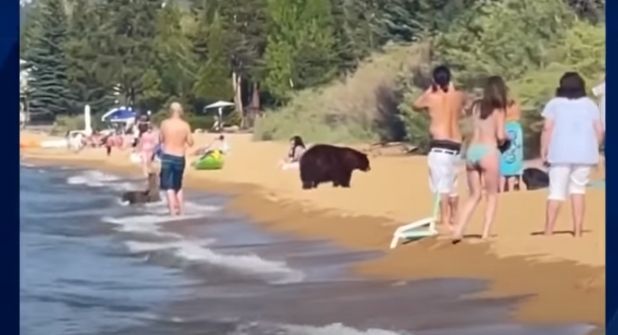 El avistamiento ocurrió a la orilla de South Lake Tahoe, cuando un ejemplar de oso negro, junto con sus tres crías, visitaron el lugar, presuntamente en búsqueda de comida.