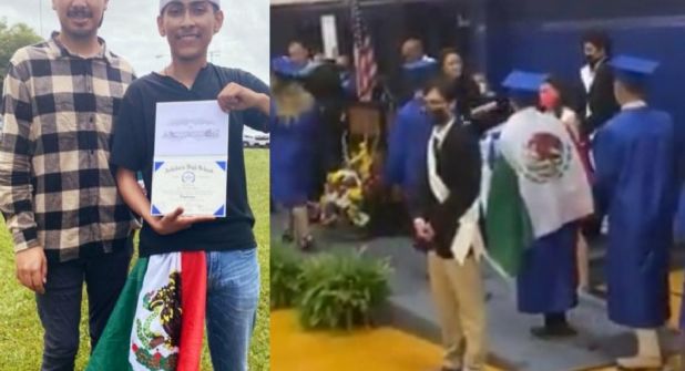 El estudiante hispano, Ever López, que portó una bandera de México en su toga durante la ceremonia de graduación de su escuela en Carolina del Norte, donde le negaron su diploma, este lunes recibió el diploma.