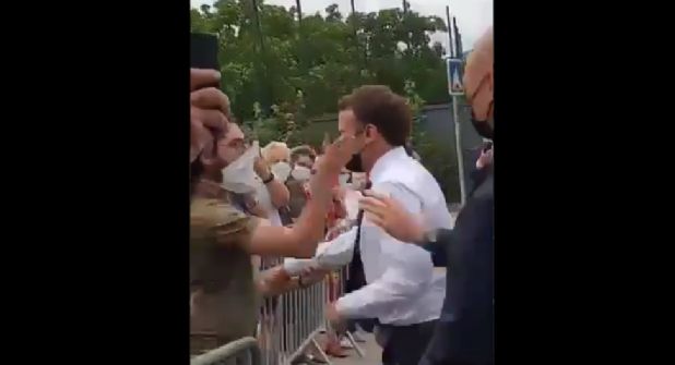 El Presidente de Francia, Emmanuel Macron, fue protagonista de una situación delicada cuando un hombre se acercó a él para propinarle una cachetada en plena gira electoral de cara a las elecciones 2021.