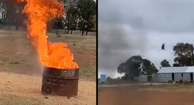 La plantación del granjero fue infestada por los ratones, para solucionar el problema decidió utilizar una máquina transportadora de grano para arrojar a los ratones hacia una hoguera elaborada con un barril. En las redes el método ha causo polémica entre los usuarios.