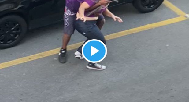 En los videos que ahora son vitales por su gran difusión en redes sociales, se puede observar a un hombre que toma por el cuello a una mujer, mientras la amenaza con una pistola.