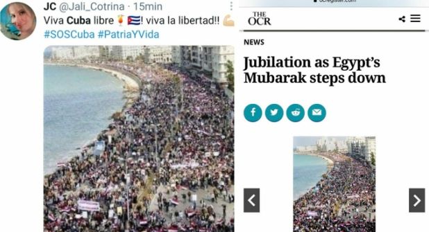 Imágenes de eventos surgidos en Argentina, Costa Rica o incluso Egipto, se han estado utilizando actualmente para "ilustrar" de forma errónea las protestas en Cuba.