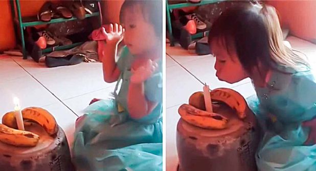 Un video muestra la emoción de una pequeña de tres años en Indonesia que celebró con su familia su cumpleaños con un “pastel” formado con dos plátanos y una vela, debido a la falta de recursos de sus papás.