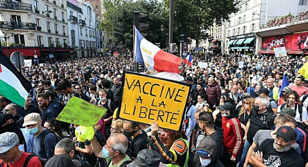 Miles de personas salieron a protestar hoy sábado en París y otras ciudades francesas por el uso obligatorio de un certificado de vacuna covid-19 que es exigido para entrar a varios lugares públicos
