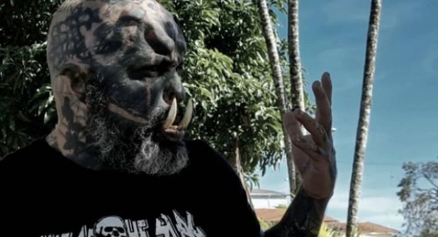 Fue a través de los años, con la acumulación de tatuajes, piercings y expansiones en su cuerpo, que su cara se fue deformando, logrando poco a poco su cometido.