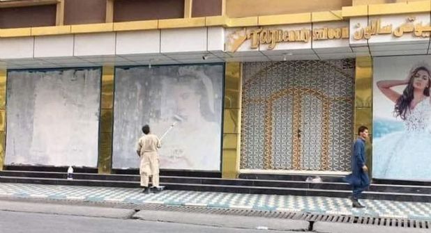 En redes sociales se ha vuelto viral la imagen de un Talibán borrando con pintura fotos de mujeres en las paredes de lo que antes solía ser un salón de belleza en Kabul, en lo que parece ser solamente un presagio de lo que vendrá.