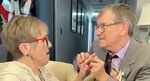 En el video se muestra el momento en el que el anciano le da la sortija a su esposa, quien debido a su enfermedad no recuerda que está casada.