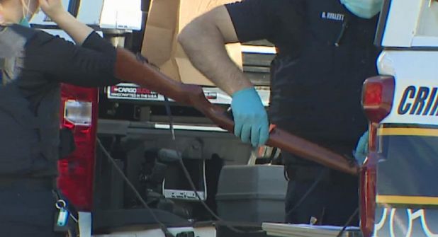 La policía informó que el sospechoso salió de la casa cuando llegaron al lugar y fue arrestado sin complicaciones; al interior de la vivienda encontraron una escopeta y un rifle, aún no determinan cuál de los dos se utilizó en el tiroteo.