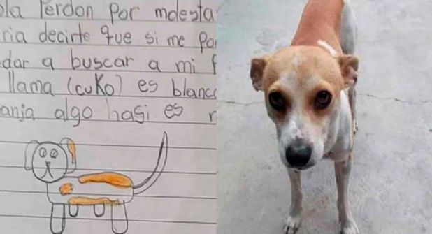 La pequeña usó las redes sociales para recuperar a su perro extraviado, y la única forma de encontrarlo fue hacer un cartel con su puño y letra donde dibujó a su amigo fiel.