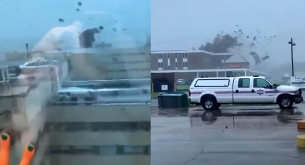 En una localidad llamada Galliano, fue grabado el impresionante momento en que el huracán destruye el techo de un hospital.