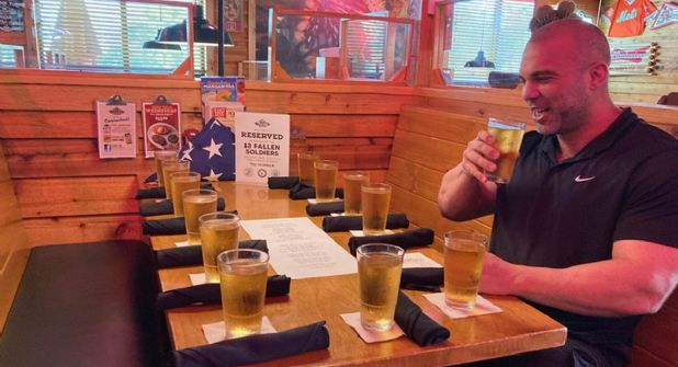 Veterano rinde homenaje en Texas Roadhouse a soldados caídos durante un ataque terrorista en el aeropuerto de Kabul.