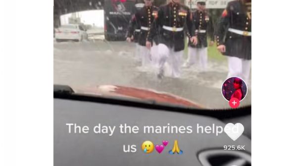 "El día en que los marines nos salvaron" , así es como titula una mujer a su video tras ser rescatada por los marines después de quedar atrapada en su auto