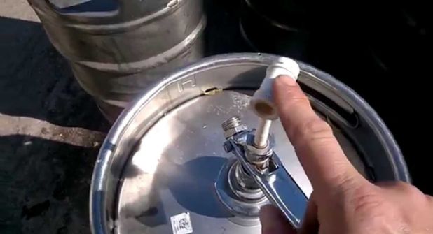 Tras llamar a la compañía Chopp Express, quien le rentó el barril de cerveza, recibió instrucciones de cómo repararlo de manera momentánea hasta que un empleado llegara.