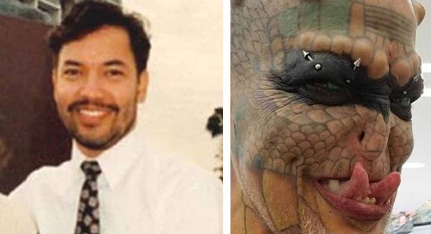 El hombre tiene 60 años y las cirugías que se ha practicado van desde la extirpación de las orejas, la división de la lengua como reptil, la castración de testículos y tatuajes en forma de escamas de reptil para lograr su sueño de ser un dragón.