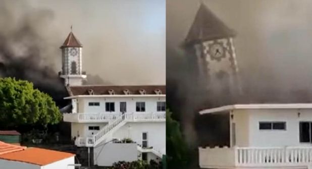 El impresionante video de la lava derribando una iglesia de la isla La Palma fue compartido en las redes.