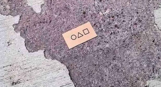 En twitter se viralizaron las fotos de una persona que halló una tarjeta en el suelo con los símbolos de El juego del calamar: un triángulo y un cuadrado, tras dar la vuelta a la tarjeta todos supieron de que se trataba.