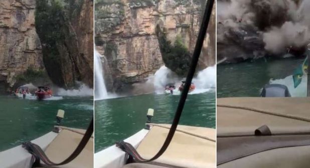 La roca gigante cayó encima de los turistas, quienes sufrieron un impacto directo y se hundieron de manera inmediata.