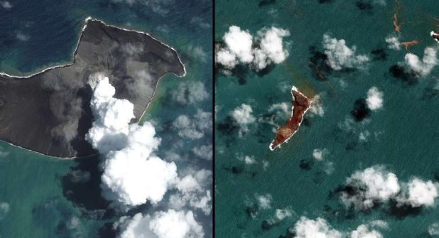 Imágenes recién publicadas tomadas desde el espacio muestran la isla Tonga después de la erupción del volcán submarino ¿desapareció la isla?